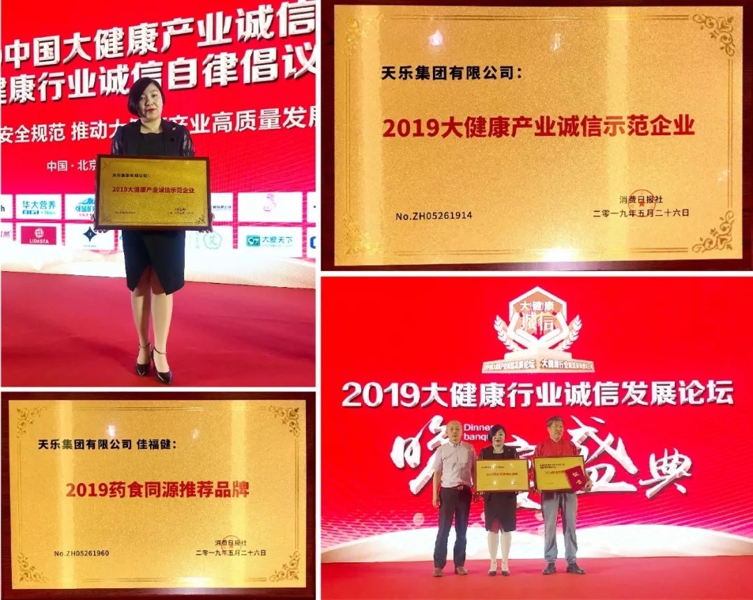 Among more than 100 companies, only 2 brands have been honored as "Recommended Brands for Medicine and Food Being One." , Tianle Group's Jiafu Jian brand took the lead to win this prestigious honor.